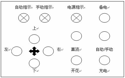 (11)自動(dòng)/手動(dòng):消防炮自動(dòng)與手動(dòng)轉(zhuǎn)換開關(guān),自動(dòng)狀態(tài)下,長按上/下/左/右按鈕后放下,可使炮在運(yùn)動(dòng)范圍內(nèi)實(shí)現(xiàn)自擺功能;手動(dòng)狀態(tài)下,點(diǎn)動(dòng)上/下/左/右按鈕,實(shí)現(xiàn)點(diǎn)動(dòng)控制。
